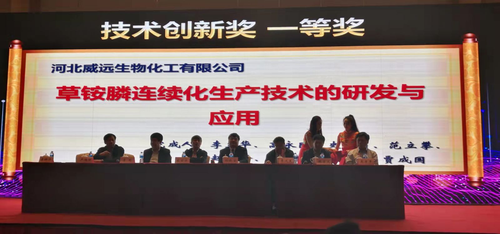 2021年10月11日,中國農(nóng)藥工業(yè)協(xié)會“第二十一屆全國農(nóng)藥交流會”主題大會順利召開,威遠(yuǎn)生化《草銨膦連續(xù)化生產(chǎn)技術(shù)的研發(fā)與應(yīng)用》項目榮獲中國農(nóng)藥工業(yè)協(xié)會“第十四屆中國農(nóng)藥工業(yè)協(xié)會農(nóng)藥創(chuàng)新貢獻(xiàn)獎 ---技術(shù)創(chuàng)新獎”一等獎。