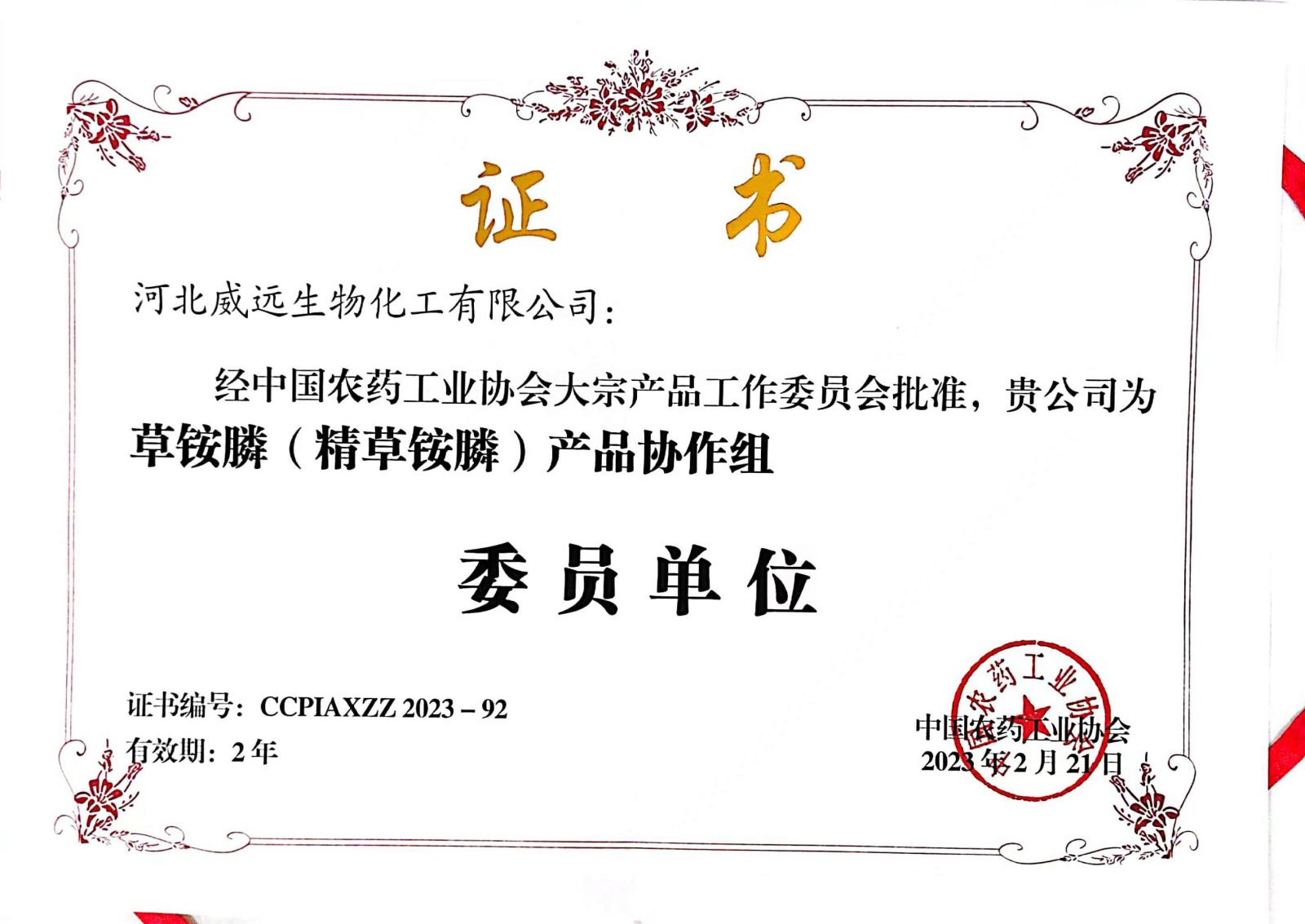近日,中國農(nóng)藥工業(yè)協(xié)會大宗產(chǎn)品工作委員會、生物技術(shù)專業(yè)委員會于山東青島成立,同時召開第一屆工作委員會年會。中國農(nóng)藥工業(yè)協(xié)會大宗產(chǎn)品工作委員會授予河北威遠(yuǎn)生物化工有限公司“阿維菌素產(chǎn)品協(xié)作組組長單位”、“草銨膦(精草銨膦)產(chǎn)品協(xié)作組委員單位”、“新煙堿類產(chǎn)品協(xié)作組委員單位”。