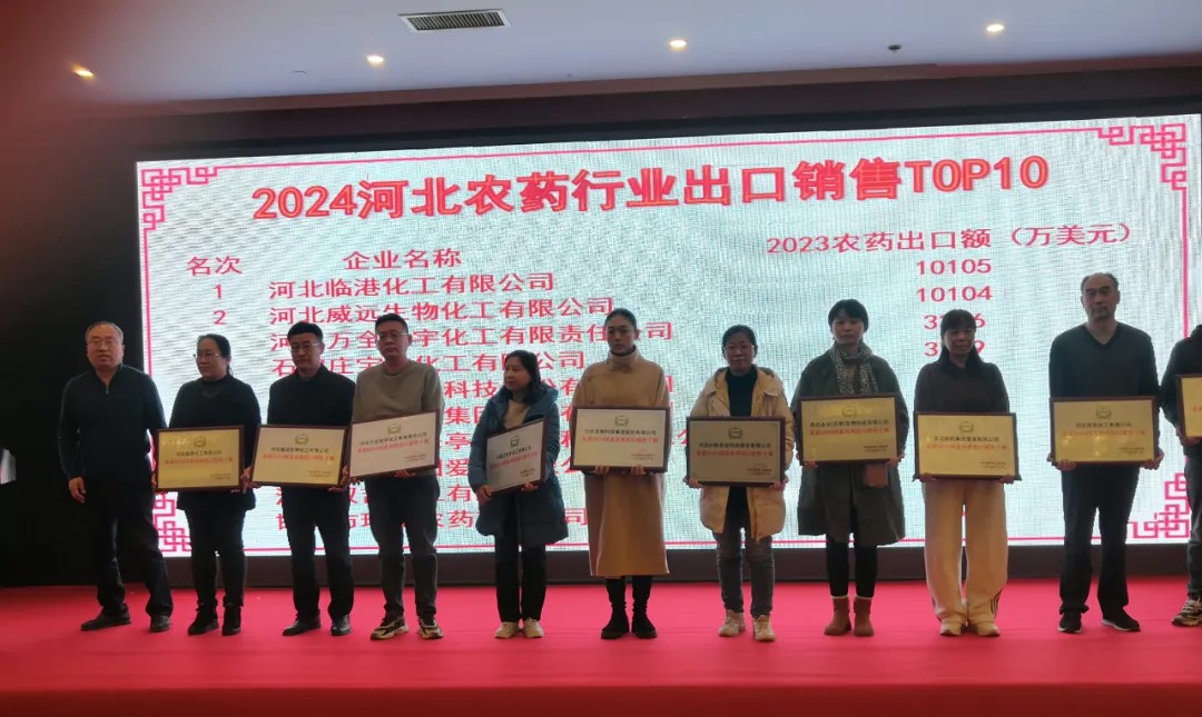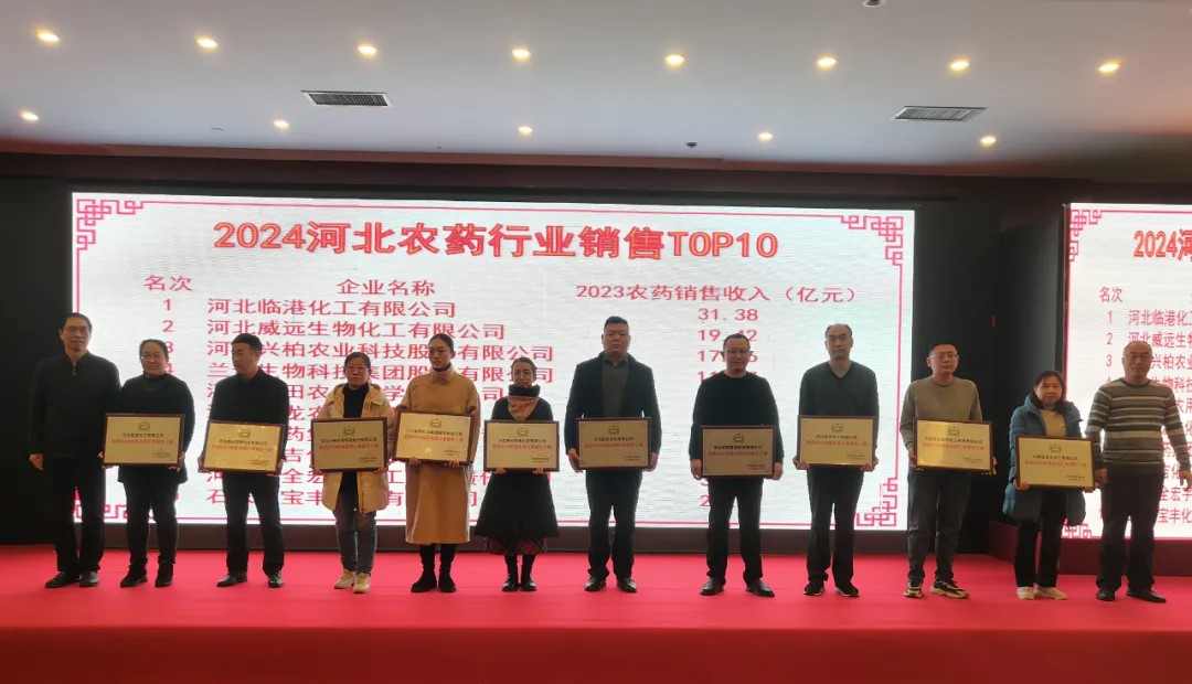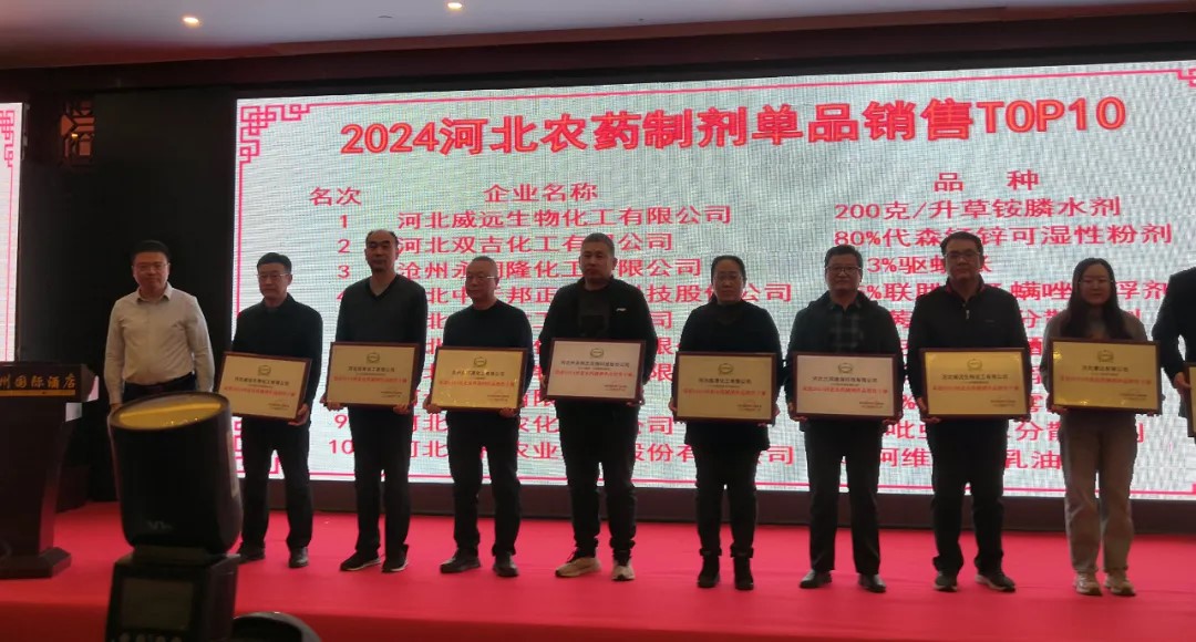 大會(huì)發(fā)布了“2024河北農(nóng)藥銷售收入TOP10、2024河北農(nóng)藥出口銷售收入TOP10、2024河北農(nóng)藥制劑單品銷售TOP10等榜單,利民股份子公司威遠(yuǎn)生化、雙吉化工分別榮獲河北農(nóng)藥銷售收入、出口銷售十強(qiáng)企業(yè)榮譽(yù)。利民股份產(chǎn)品200克/升草銨膦水劑、80%代森錳鋅可濕性粉劑、1.8%阿維菌素乳油分別榮獲河北省制劑單品銷售十強(qiáng)榮譽(yù)稱號(hào)。